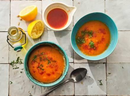 3. Spoel ondertussen de linzen af onder koud stromend water en laat uitlekken in een vergiet. Voeg de linzen toe aan de gepureerde soep en kook nog 15 min. Breng op smaak met peper en zout.